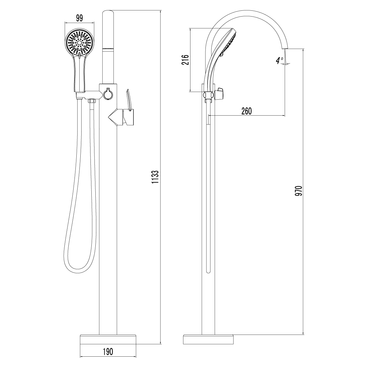 Смеситель напольный и душа Lemark Atlantiss хром (LM3244C)