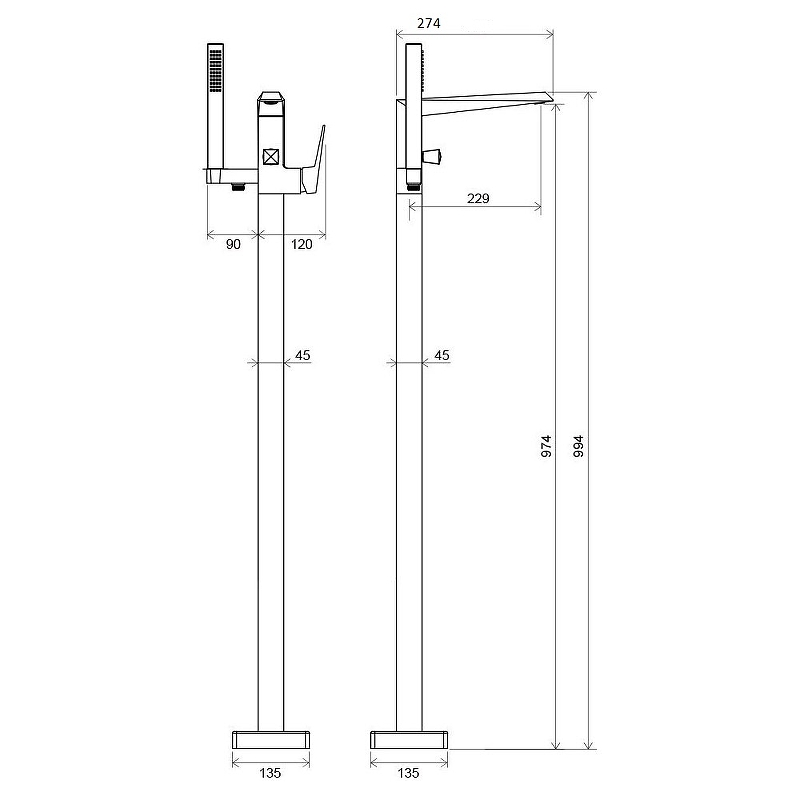 Смеситель напольный Ravak Freedom FM 081.00 с душевой лейкой хром (X070079)