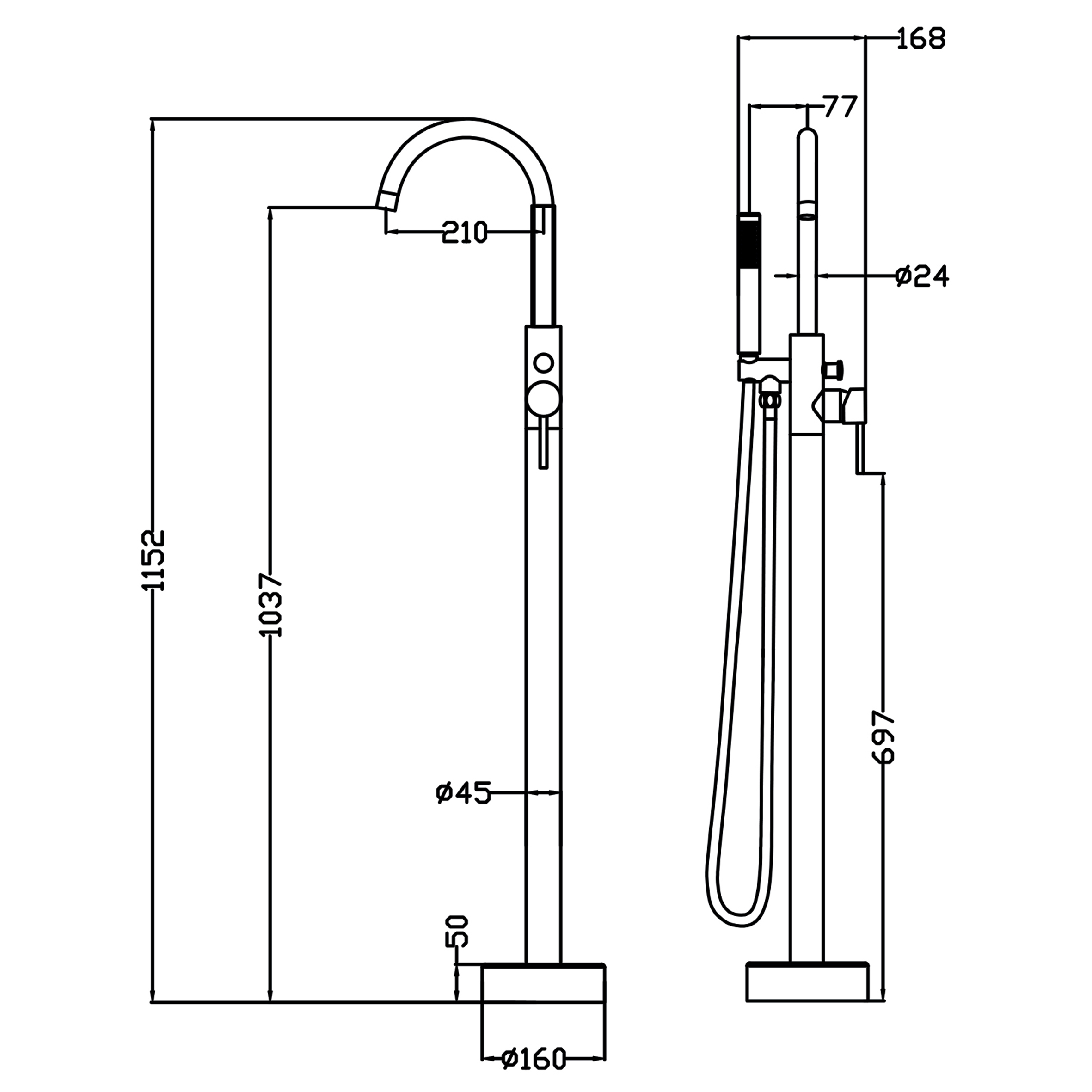 Смеситель напольный Swedbe Spira хром (4000)