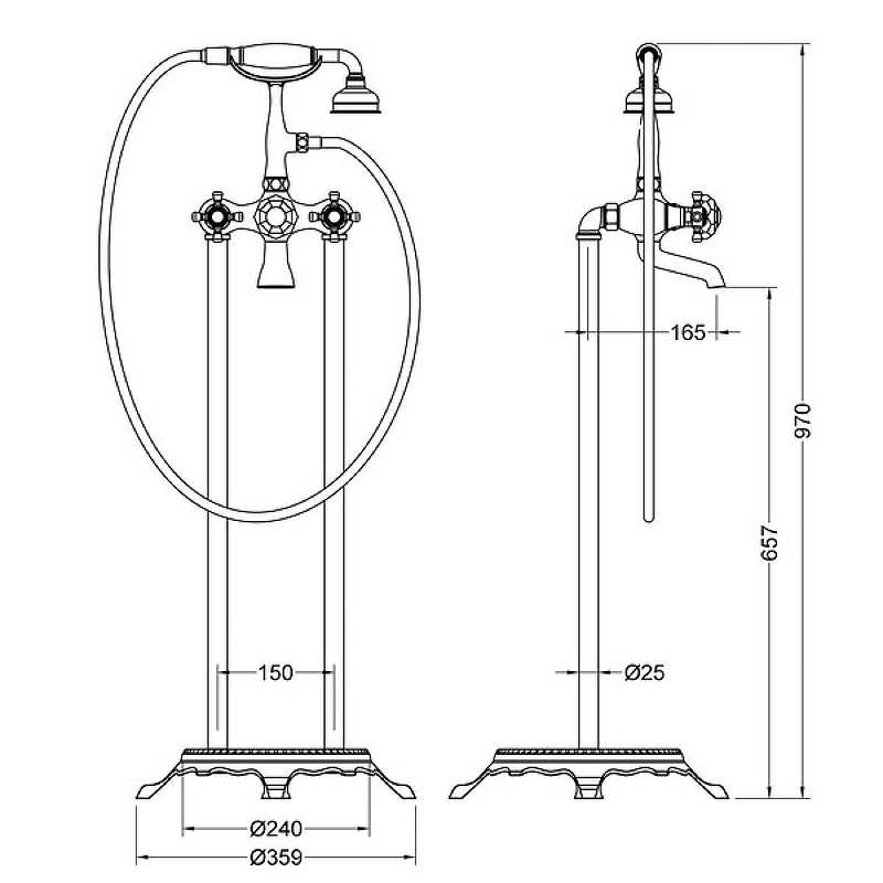 Смеситель напольный Timo Nelson черный, душевая лейка, душевой шланг (1900/03Y-CR)