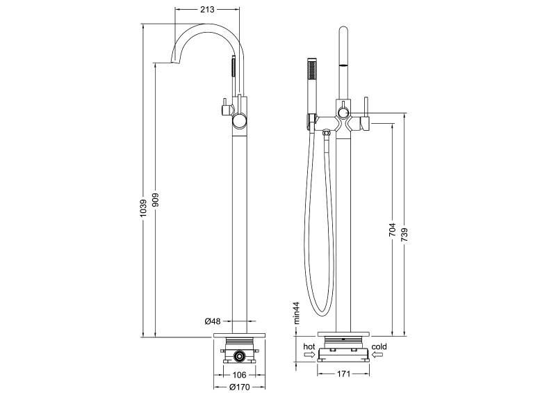 Смеситель напольный Timo Saona черный, душевая лейка, душевой шланг (2310/03Y-CR)