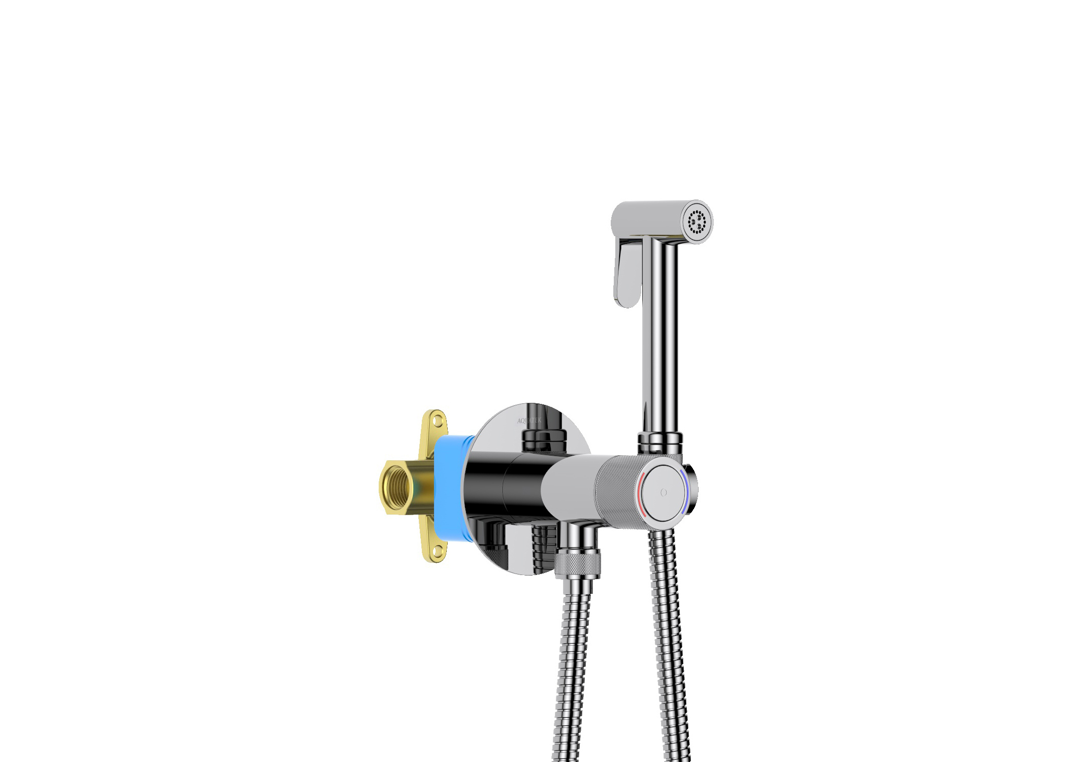 смеситель из латуни с установочной коробкой, керамический картридж click-open, ручка из латуни, декоративная накладка из нерж., размер 80*80*2,5мм, гигиенический душ из латуни, шланг из нерж., длина 1,2м, упакован в коробку со вставкой из вспененного пвх