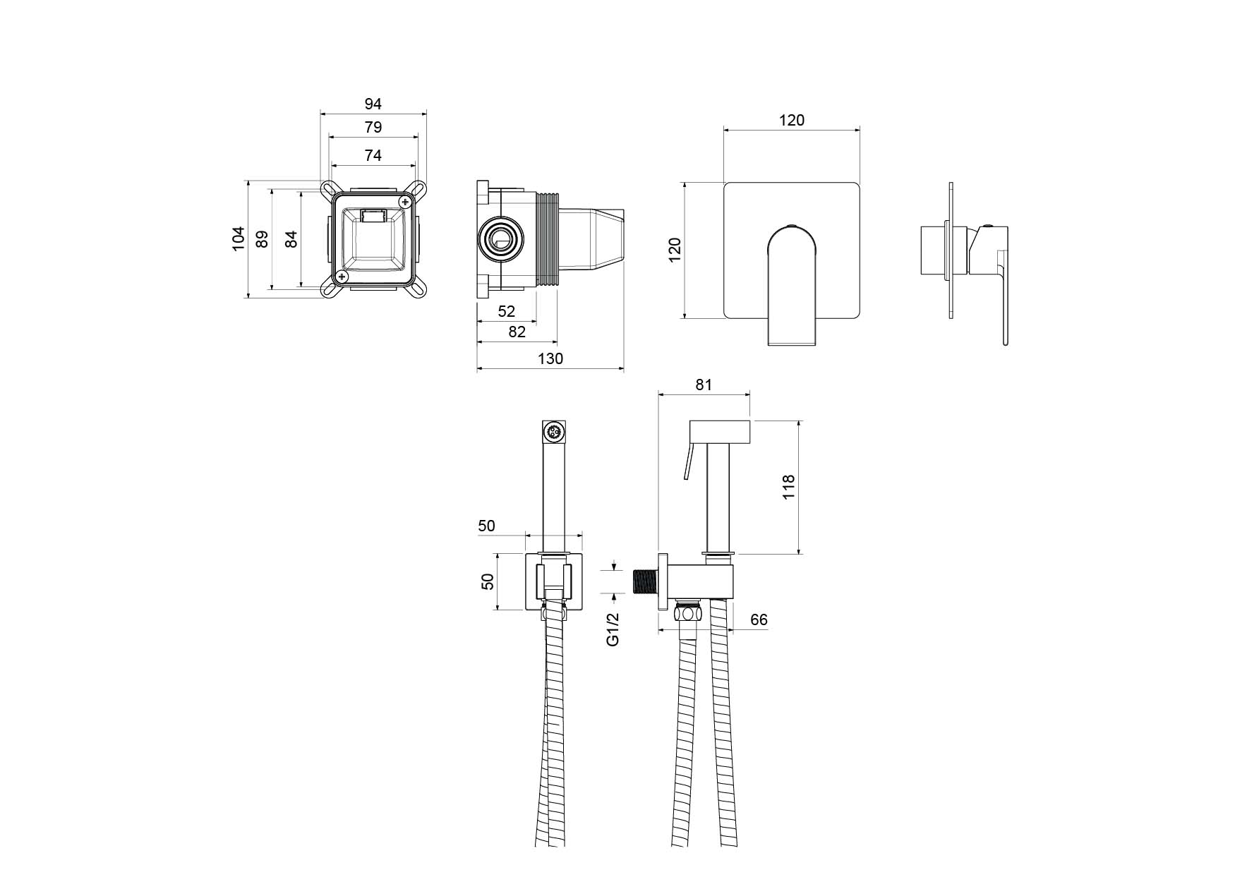 смеситель из латуни, картридж citec 35 мм, испания, декоративная пластина 3мм из нерж., латунный гигиенический душ, латунный держатель для душа, душевой шланг 1,2м из нерж., упакован в коробку, пленку из вспененного пвх