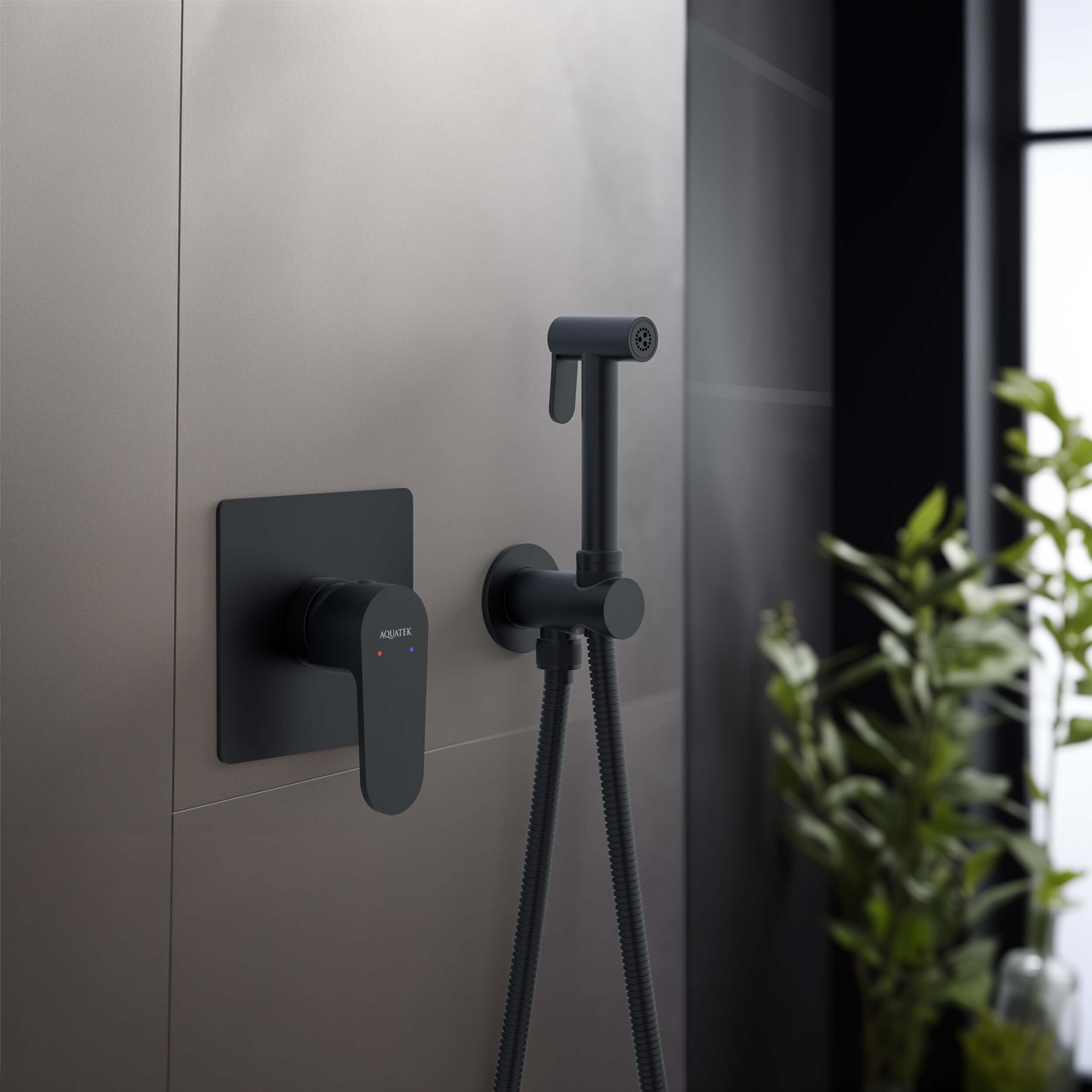 Смеситель с гигиеническим душем Aquatek Оберон черный матовый (AQ1219MB)