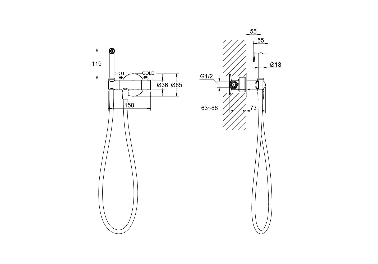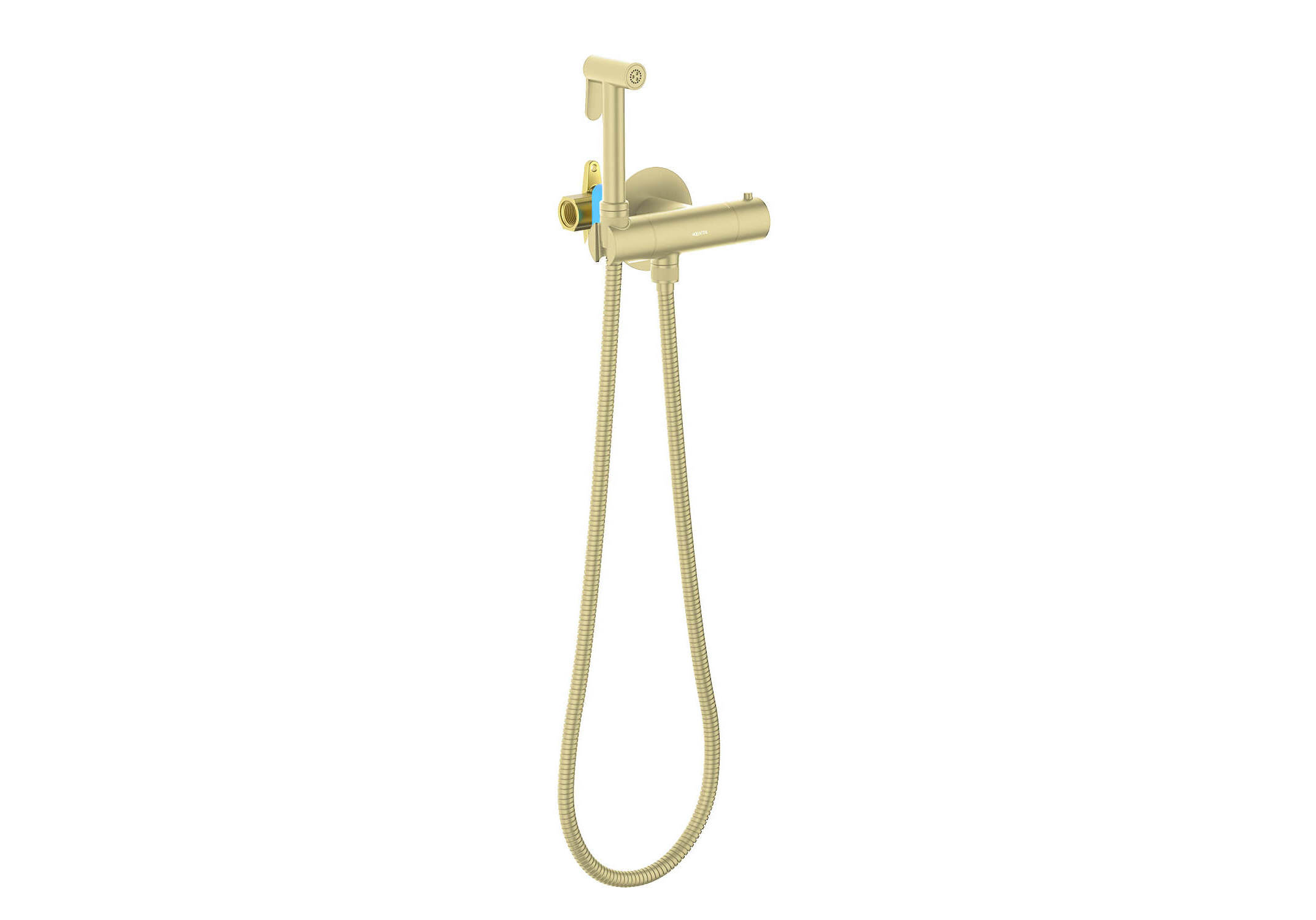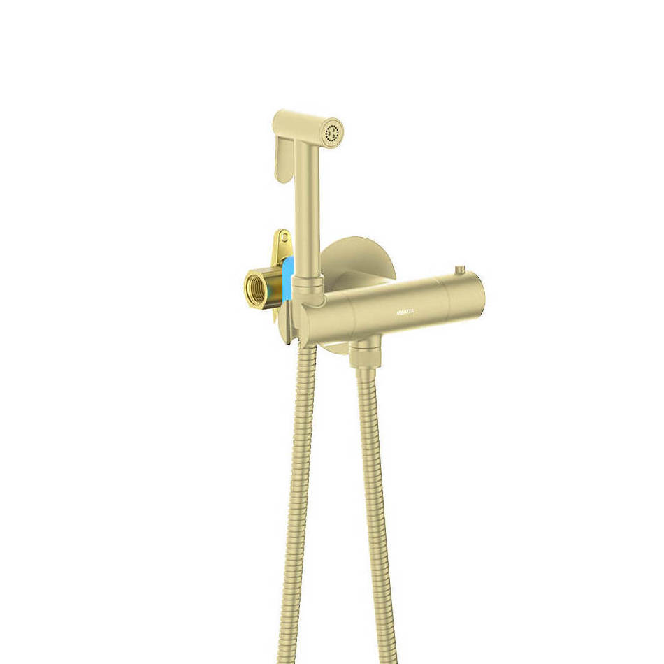 Смеситель с гигиеническим душем Aquatek Оберон термост встроенный (гигиеническая лейка, шланг) шлифованное золото (AQ1027BG)