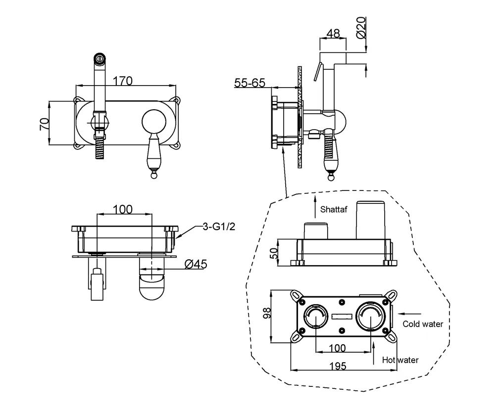состав поставки: смеситель (внешняя и внутренняя часть), гигиенический душ, душевой шланг, гибкая подводка, крепеж