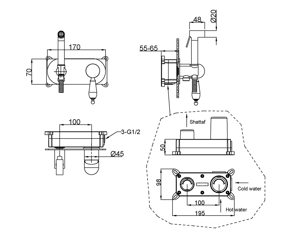 состав поставки: смеситель (внешняя и внутренняя часть), гигиенический душ, душевой шланг, гибкая подводка, крепеж