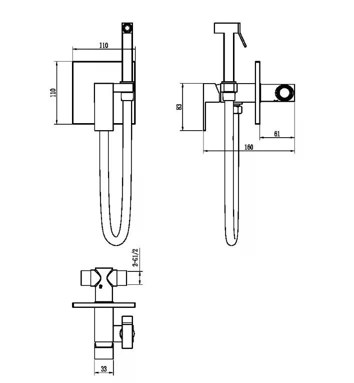 Состав поставки: смеситель (внешняя и внутренняя часть), шланг, настенный держатель, гигиеническая лейка