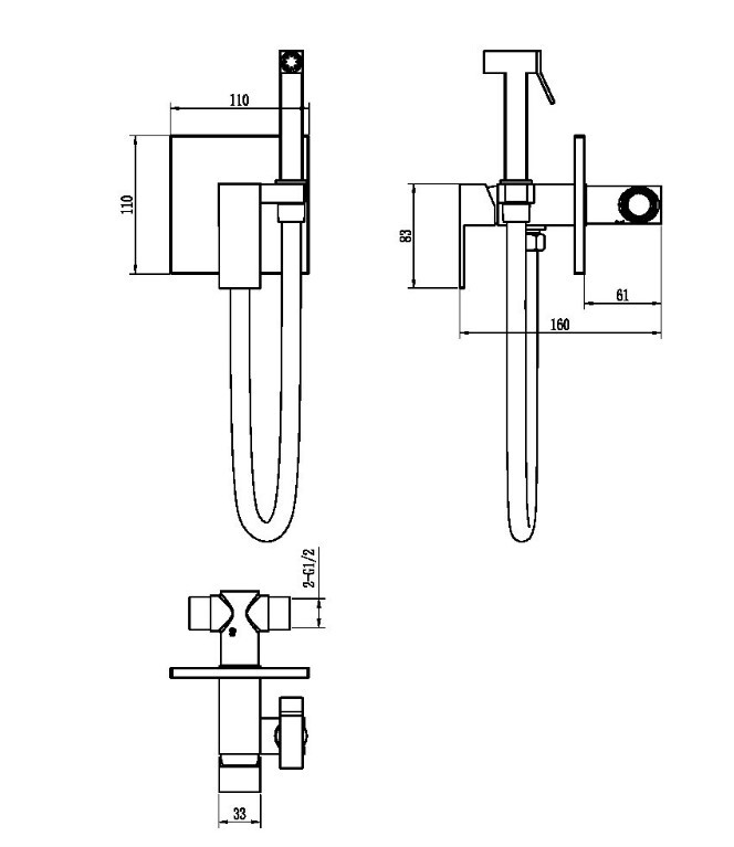 Состав поставки: смеситель (внешняя и внутренняя часть), шланг, настенный держатель, гигиеническая лейка