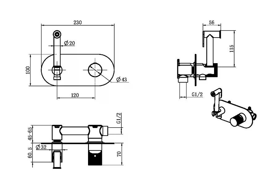 состав поставки: смеситель (внешняя и внутренняя часть), гигиенический душ, душевой шланг, гибкая подводка, крепеж