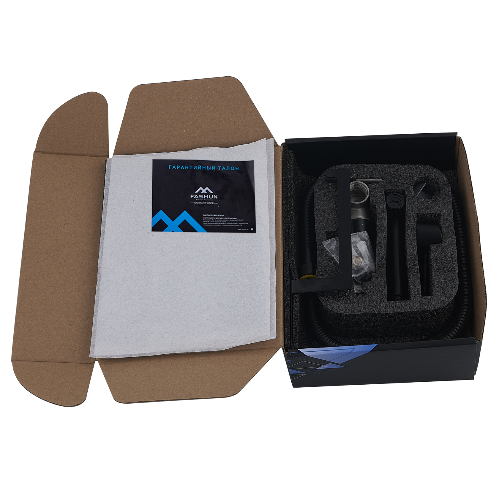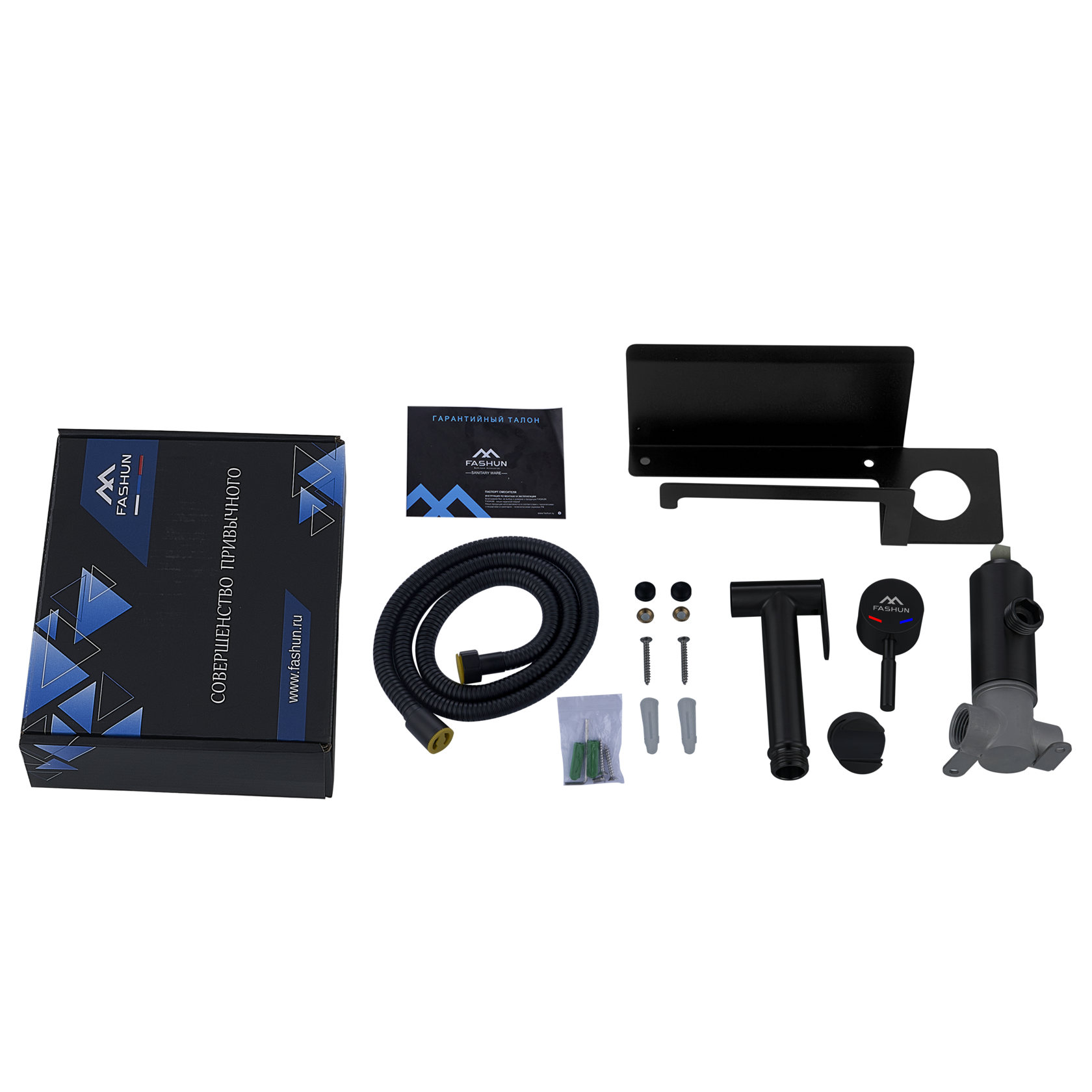 Смеситель с гигиеническим душем Fashun с полочкой, с держ туалет. бумаги встраиваемый чёрный (A57703-7)
