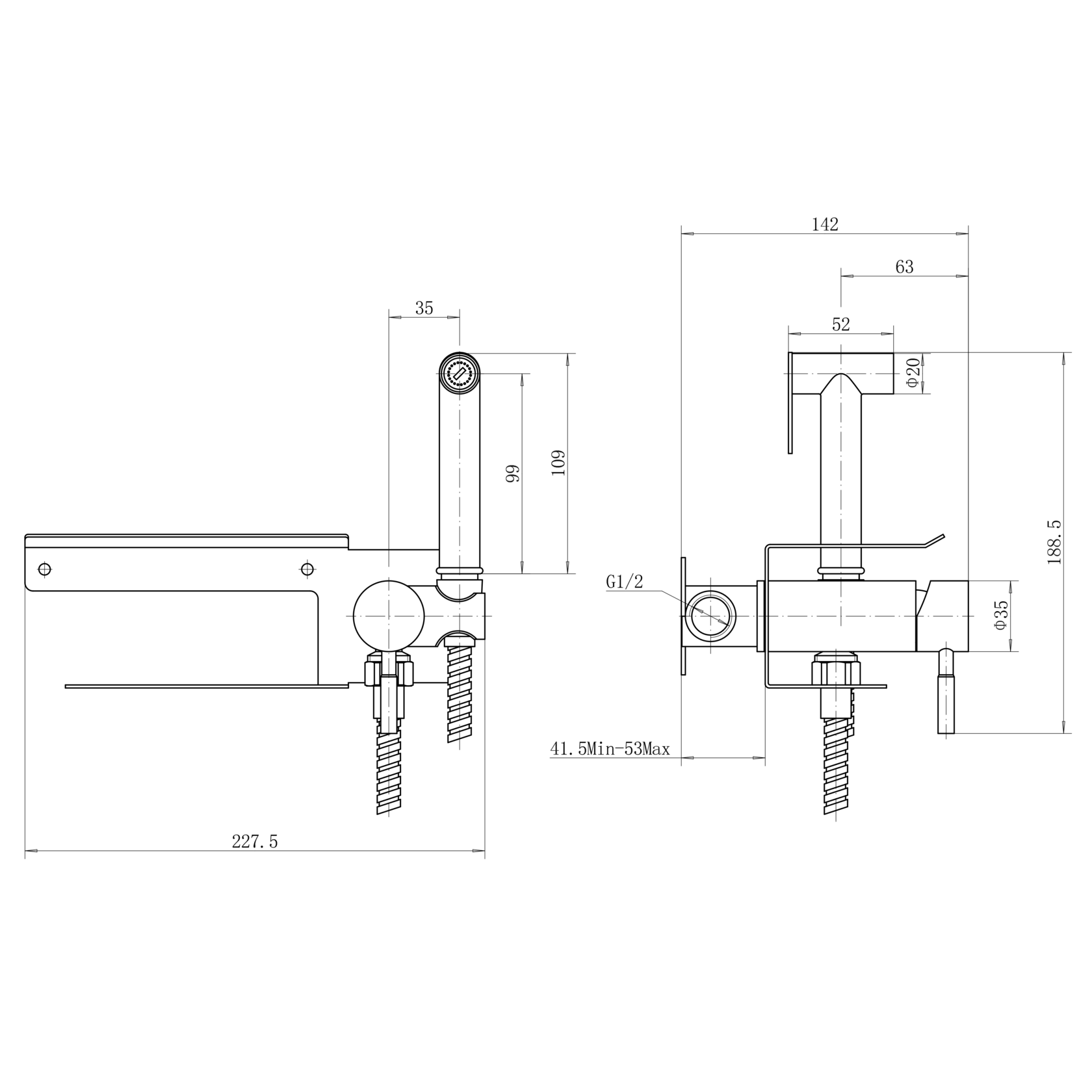 смеситель встраиваемый с полочкой, гигиенической лейкой и держателем туалетной бумаги