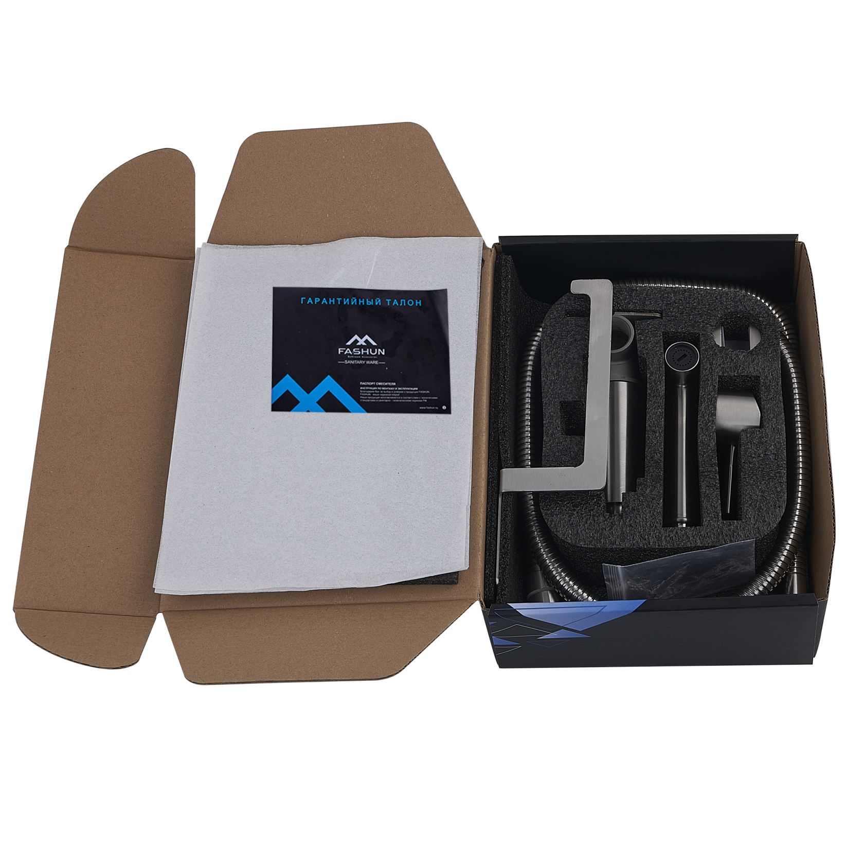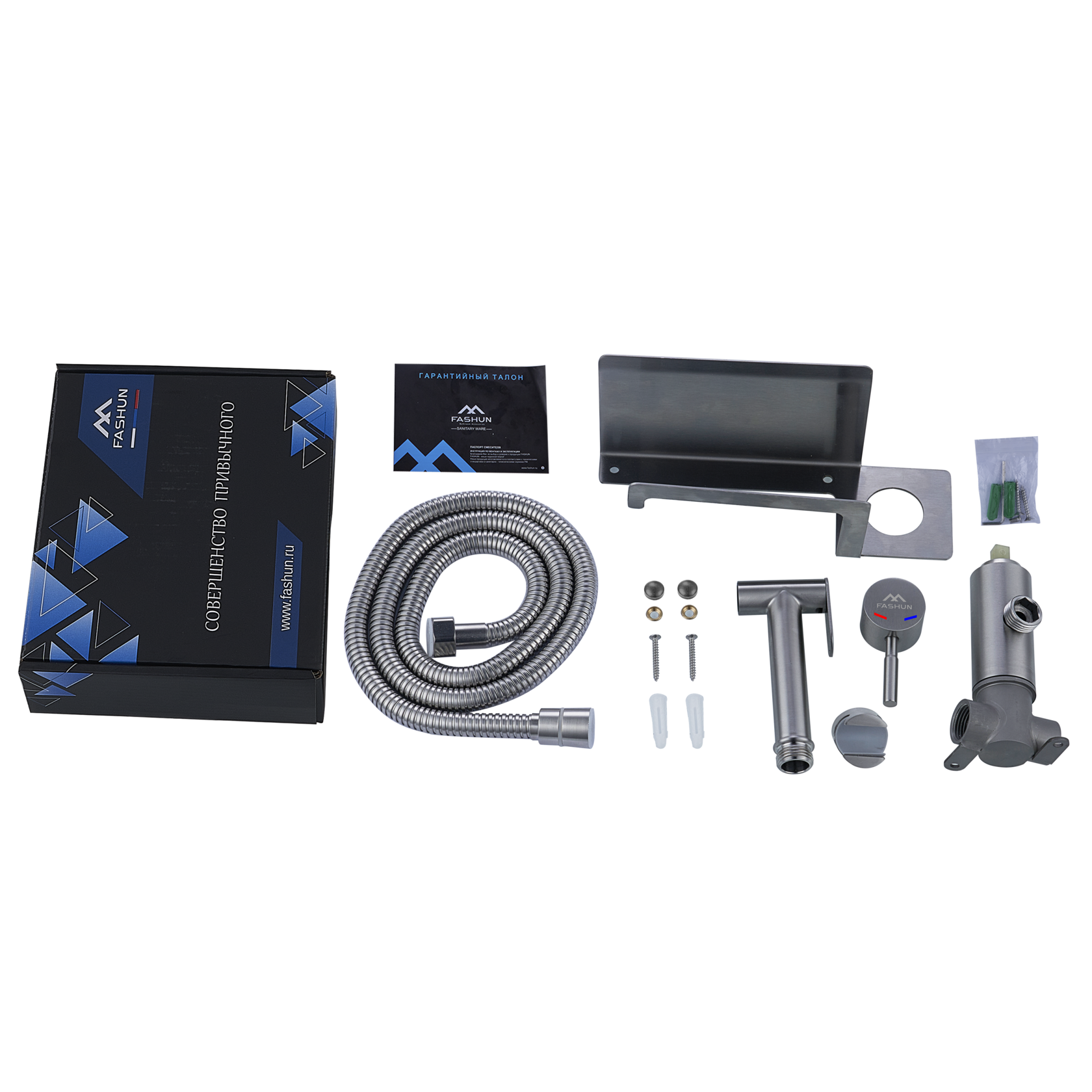 Смеситель с гигиеническим душем Fashun с полочкой, с держ туалет. бумаги встраиваемый сатин (A57703)