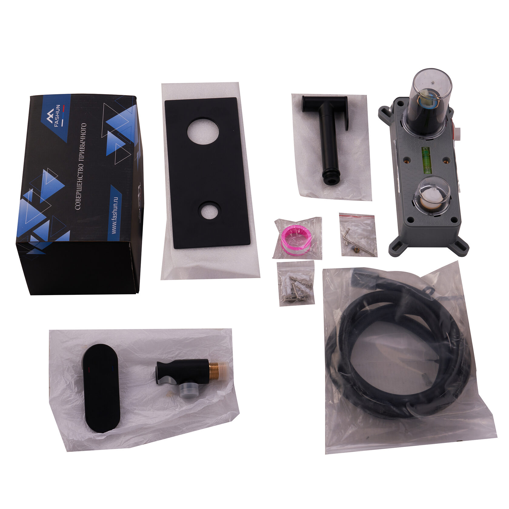 Смеситель с гигиеническим душем Fashun встраиваемый чёрный (A7585-7)