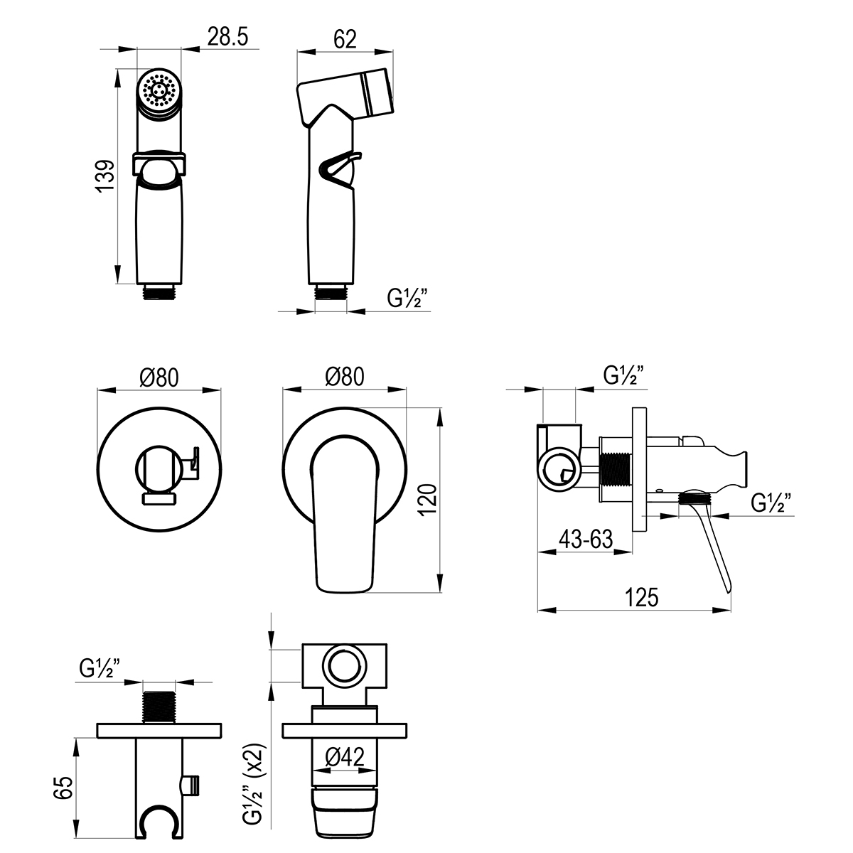 Встраиваемый смеситель с гигиеническим душем, латунь/хром