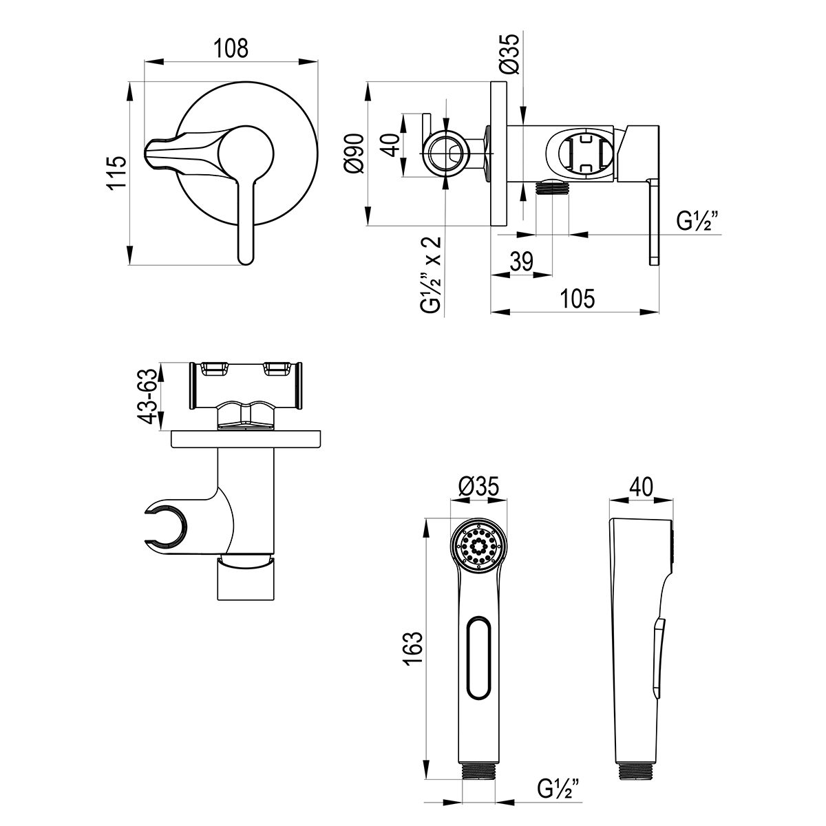 Встраиваемый смеситель с гигиеническим душем, латунь/хром