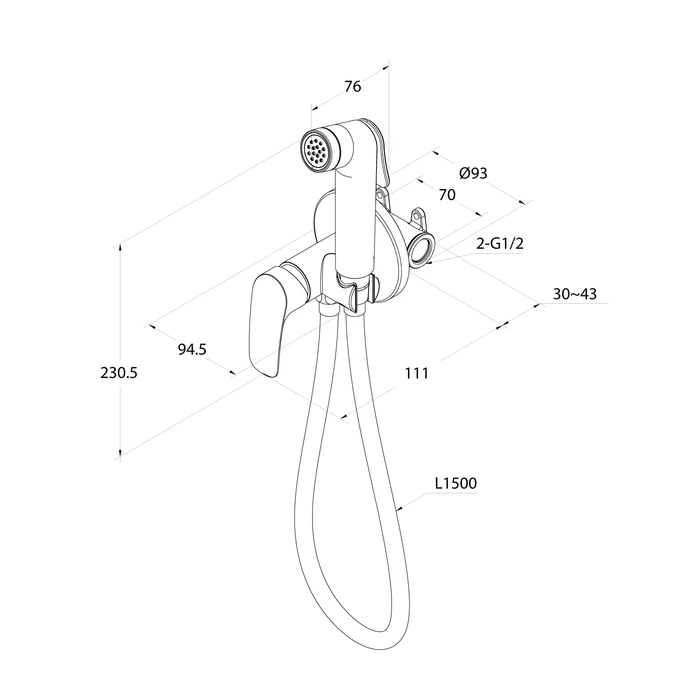 Встраиваемый смеситель с гигиеническим душем, однозахватный, латунь, PVD покрытие, керамический картридж 25 мм. В комплекте: шланг в металлической оплетке 1,5 м, гигиеническая лейка ABS-пластик. Внутренняя часть в комплекте. Упаковка: картонная коробка, индивид мешок.
