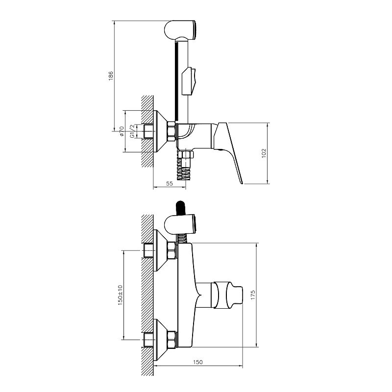 Смеситель с гигиеническим душем, латунь/хром