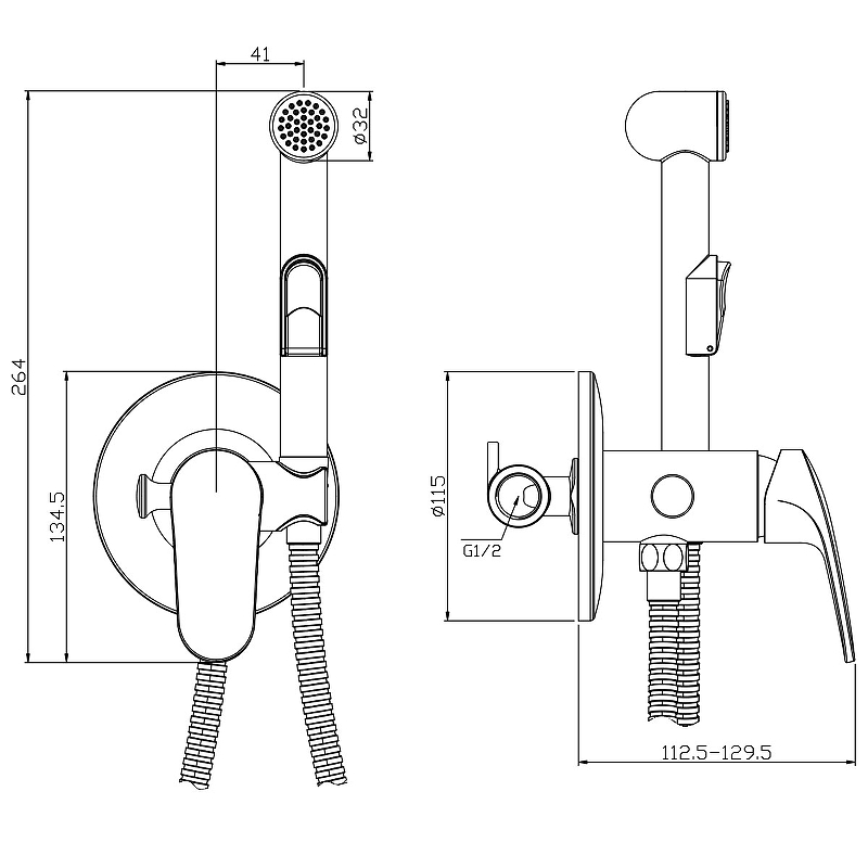 Встраиваемый смеситель с гигиеническим душем, латунь/хром