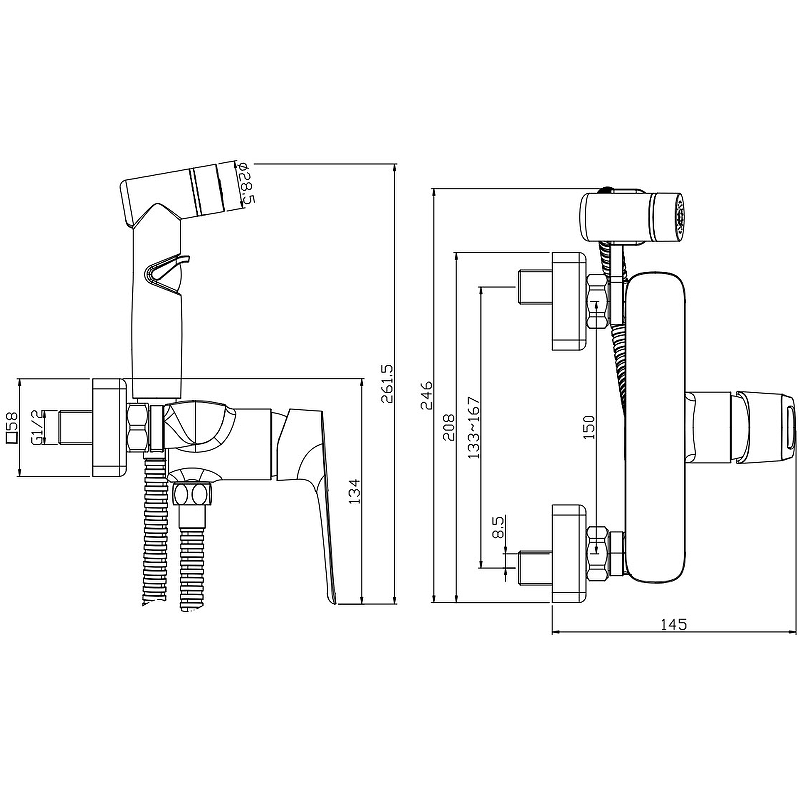 Смеситель с гигиеническим душем, латунь/хром