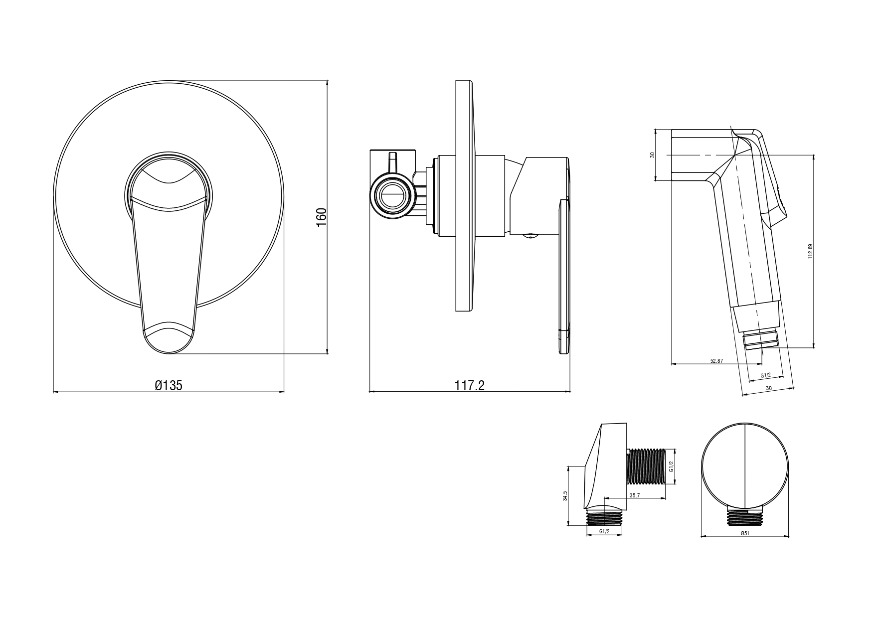 Смеситель с гигиеническим душем Voda хром (WF4in1)