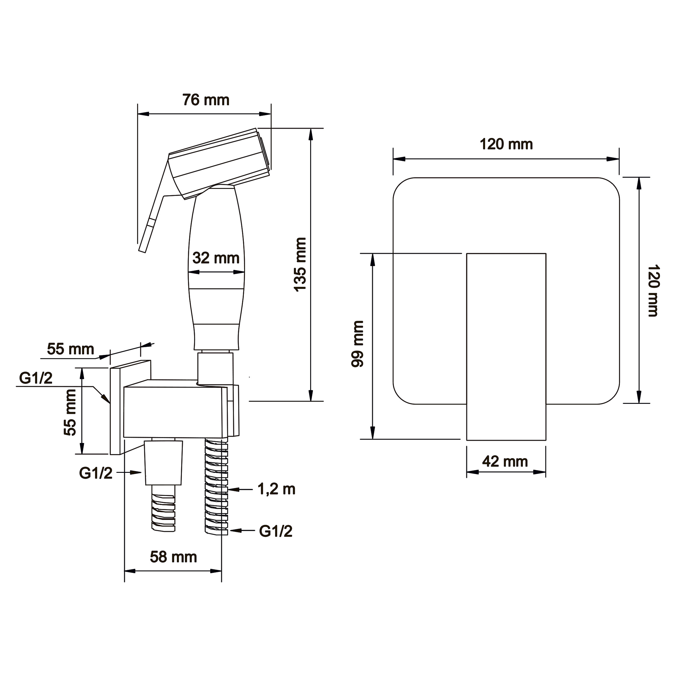 Смеситель с гигиеническим душем встраиваемый Swedbe Platta хром (5526)