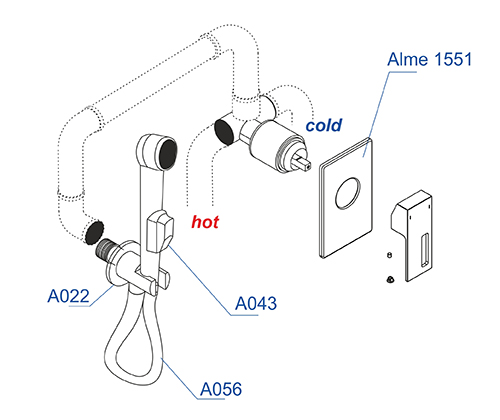 A01556 Встраиваемый комплект для биде со шлангом 100 см