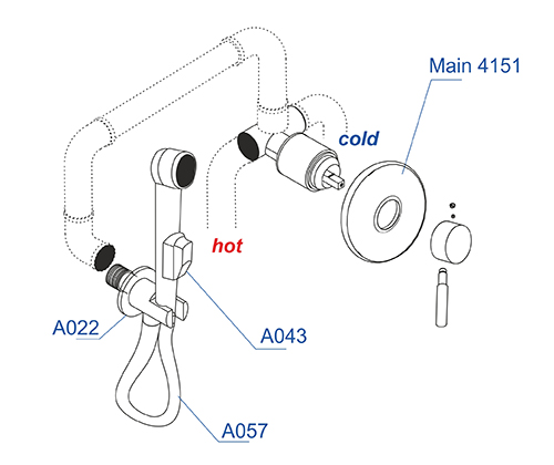 A04157 Встраиваемый комплект для биде со шлангом 120 см