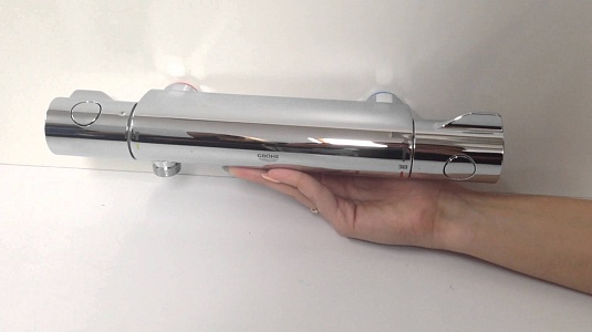 Вентильный термостат Grohe Grohtherm 800 обеспечивает комфорт во время принятия душа, поддерживая заданную температуру и напор воды. Он изготовлен из высококачественной латуни, что обеспечивает его коррозионную стойкость. Снабжен девиатором для переключения потоков воды. Устройство позволяет сократить расход воды, одним поворотом рукоятки прекращая ее подачу, например, во время намыливания. Эксцентрики снижают уровень шума льющейся воды. Встроенный фильтр не дает частицам из водопровода попасть внутрь, увеличивая срок службы оборудования и обеспечивая пользователя чистой водой.Обратный клапан препятствует оттоку воды в трубы при ее отключении.