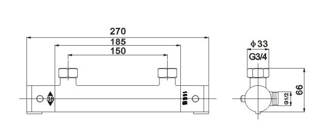 - Смеситель с термостатом- Технология "Cold-touch" - защита от нагрева корпуса. Расположение "входов" для подключения воды: горячая слева, холодная справа