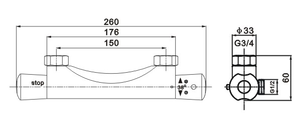 - Смеситель с термостатом - расположение "входов" для подключения воды: горячая слева, холодная справа