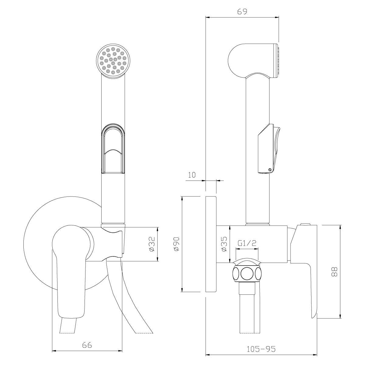 - Аксессуары в комплекте (шланг 1,2 м, лейка для биде с нажимным механизмом)