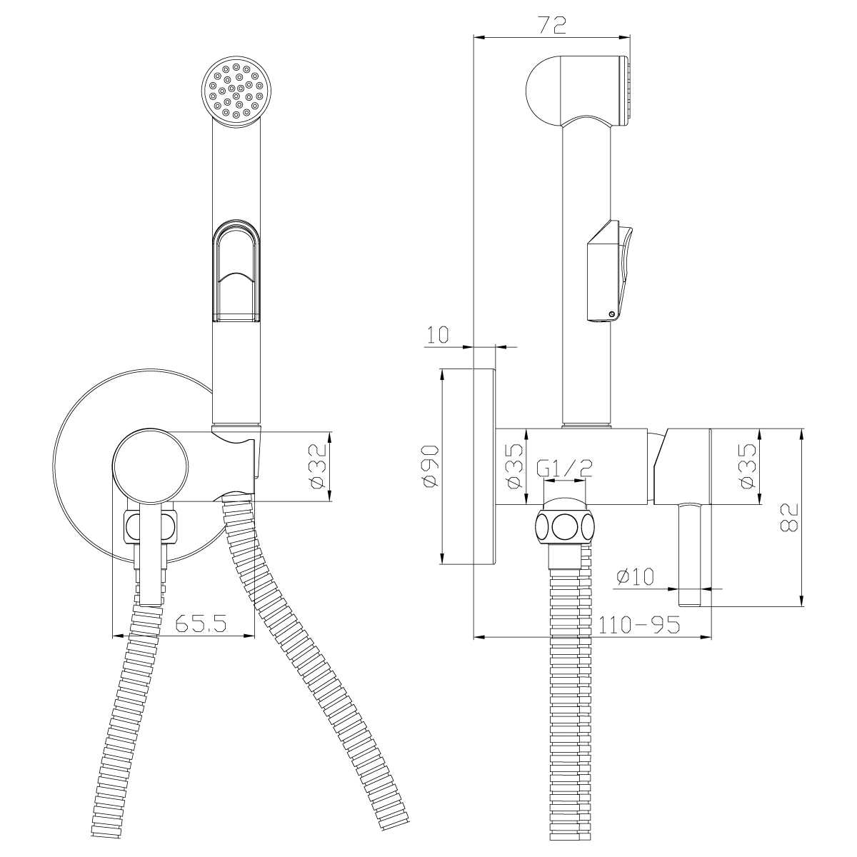 - Аксессуары в комплекте (шланг 1,2 м, лейка для биде с нажимным механизмом)