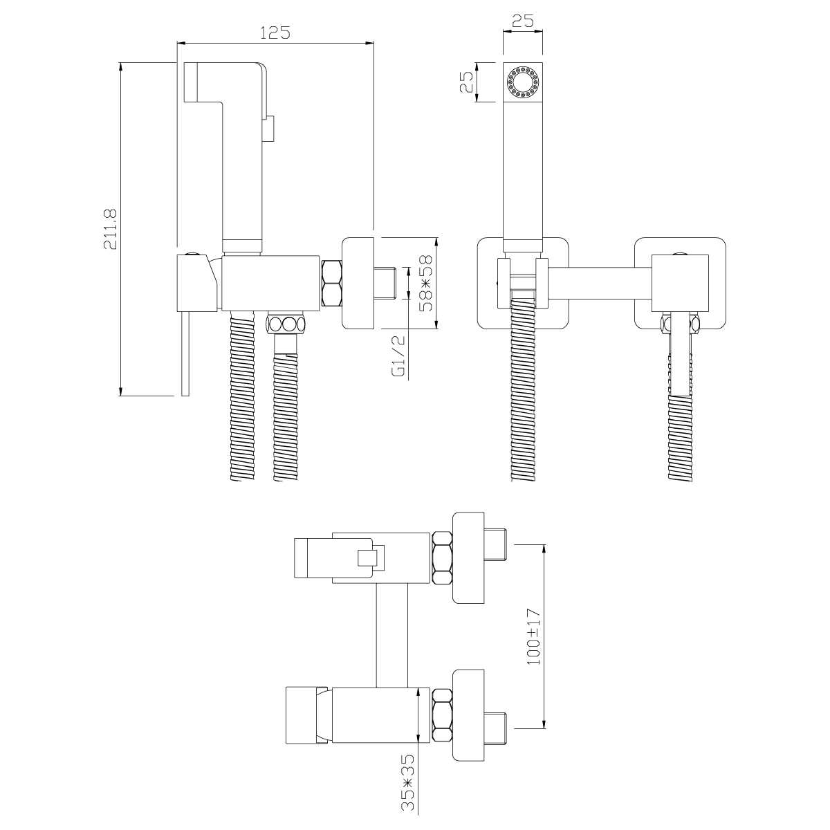 - Аксессуары в комплекте (шланг 1,2 м, лейка для биде с нажимным механизмом)