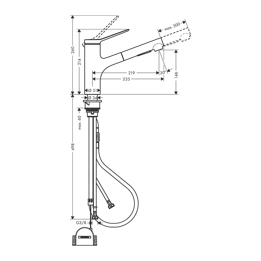 Смеситель для кухни Hansgrohe Zesis M хром, с видвижным изливом (74803000)
