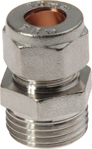 ниппель переходной с цангой 10 мм TERMA 06009 изготовлен из горячепрессованной латуни с никелированным покрытием, присоединительный размер 1/2"", резьба трубная цилиндрическая. Номинальное рабочее давление от 25 бар, рабочий диапазон температуры от -20°C до +150°C.