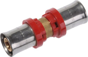 Пресс-фитинг Terma представляет собой прямое пресс-соединение металлопластиковых труб с диаметром 16 мм. Гильзы пресс-фитинга изготовлены из стали AISI-304, корпус фитинга - из латуни.