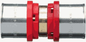 Пресс-фитинг Terma представляет собой прямое пресс-соединение металлопластиковых труб с диаметром 26 мм. Гильзы пресс-фитинга изготовлены из стали AISI-304, корпус фитинга - из латуни.