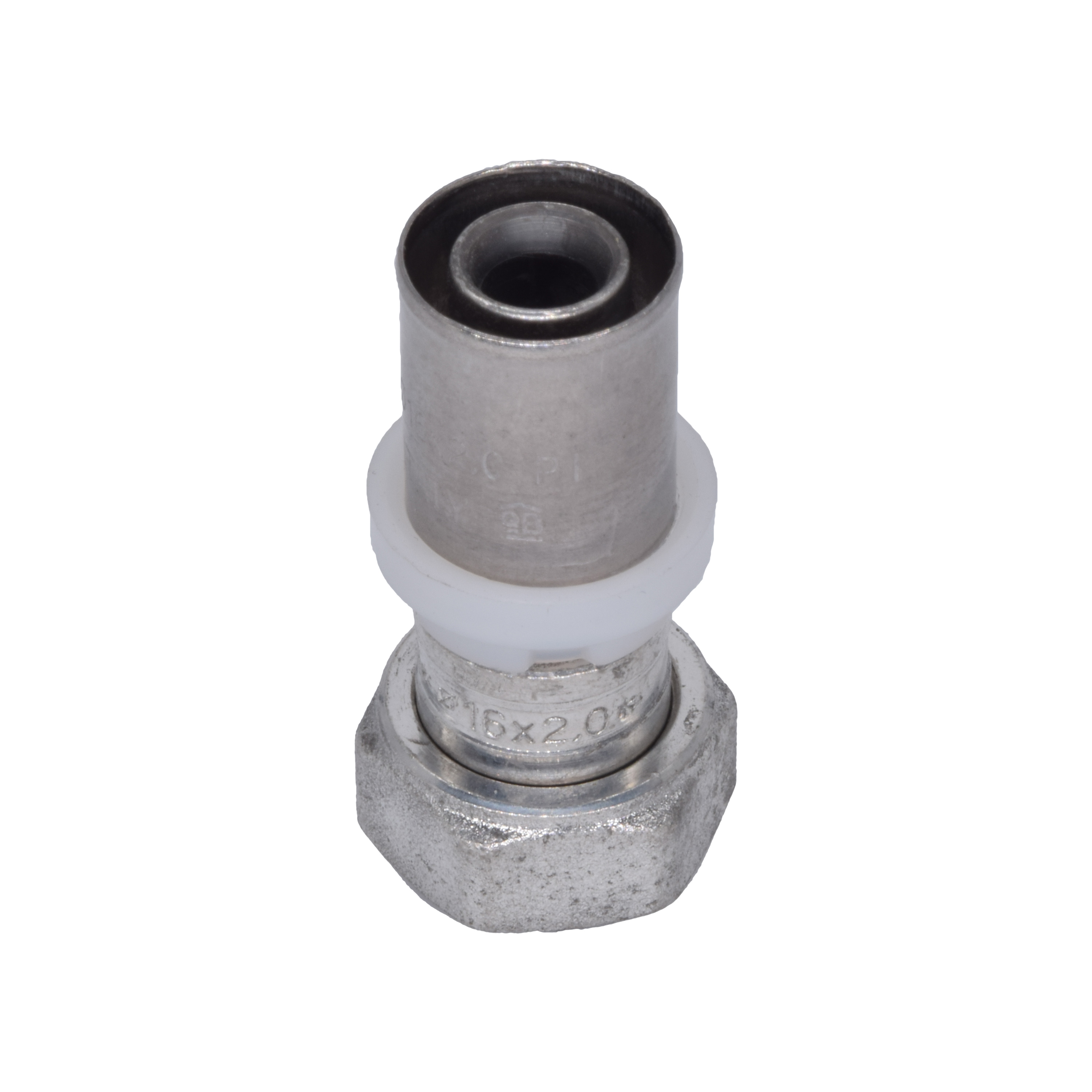 Соединение прямое Tiemme 16*1/2"(16) с накидной гайкой (пресс) (никель) (1650160 / 1668S1604CZ) / Для многослойной трубы. Прямой фитинг с накидной гайкой для корпусов с соединениями 1/2"x16 (Art. 1668SN)