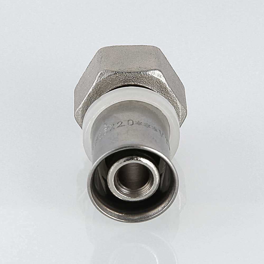 Пресс-фитинг для подключения металлопластиковой трубы или полимерной трубы размером 16 x 2 мм к коллекторам VALTEC VTc.500.N, VTc.560.N, VTc.580.N и коллекторному тройнику VTp.734. Резьбовое присоединение – стандарта """"конус"""", 1/2"""". Уплотнение штуцера со стороны накидной гайки – с помощью двух колец из синтетического каучука EPDM. Максимальная рабочая температура рабочей среды составляет 110 °C, давление – 10 бар.