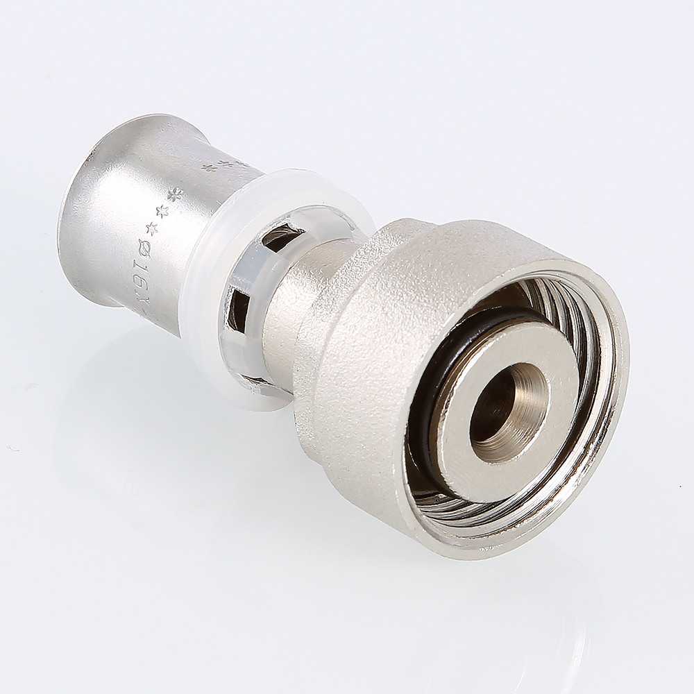 Соединение прямое 16*3/4"(18) евроконус с накидной гайкой Valtec (пресс, никель) (VTc.712.NE.1605)
