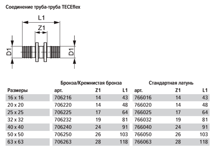 Соединения труба-труба TECE TECEflex латунь - латунные фитинги входящие в систему TECEflex. Сертифицированы и разрешены для трубопроводных сетей питьевой воды, отопления, газоснабжения и сжатого воздуха.