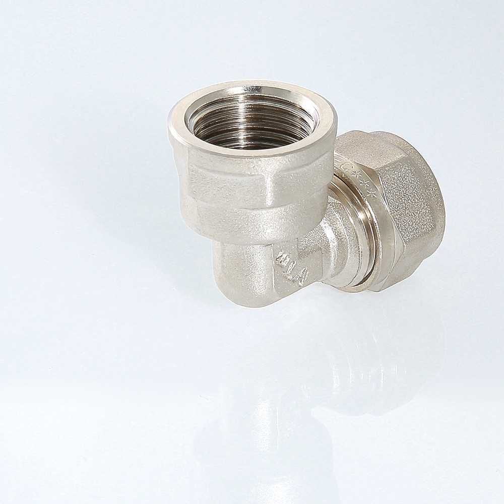 Предназначен для изменения направления потока под углом 90°. С одной стороны к фитингу присоединяется методом обжима металлополимерная (металлопластиковая) труба, с другой стороны – переход на внутреннюю резьбу. Диаметр трубы. Резьба фитинга – внутренняя трубная по ГОСТу 6357. Фитинг может использоваться в системах питьевого и хозяйственного водопровода, горячего водоснабжения, отопления, а также на технологических трубопроводах, транспортирующих жидкости, не агрессивные к материалам фитинга.