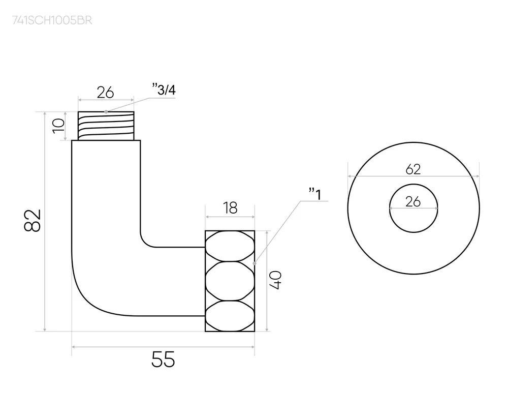 Соединение угловое Indigo г/ш 1"х3/4" черный муар, пара (741SCH1005BR)