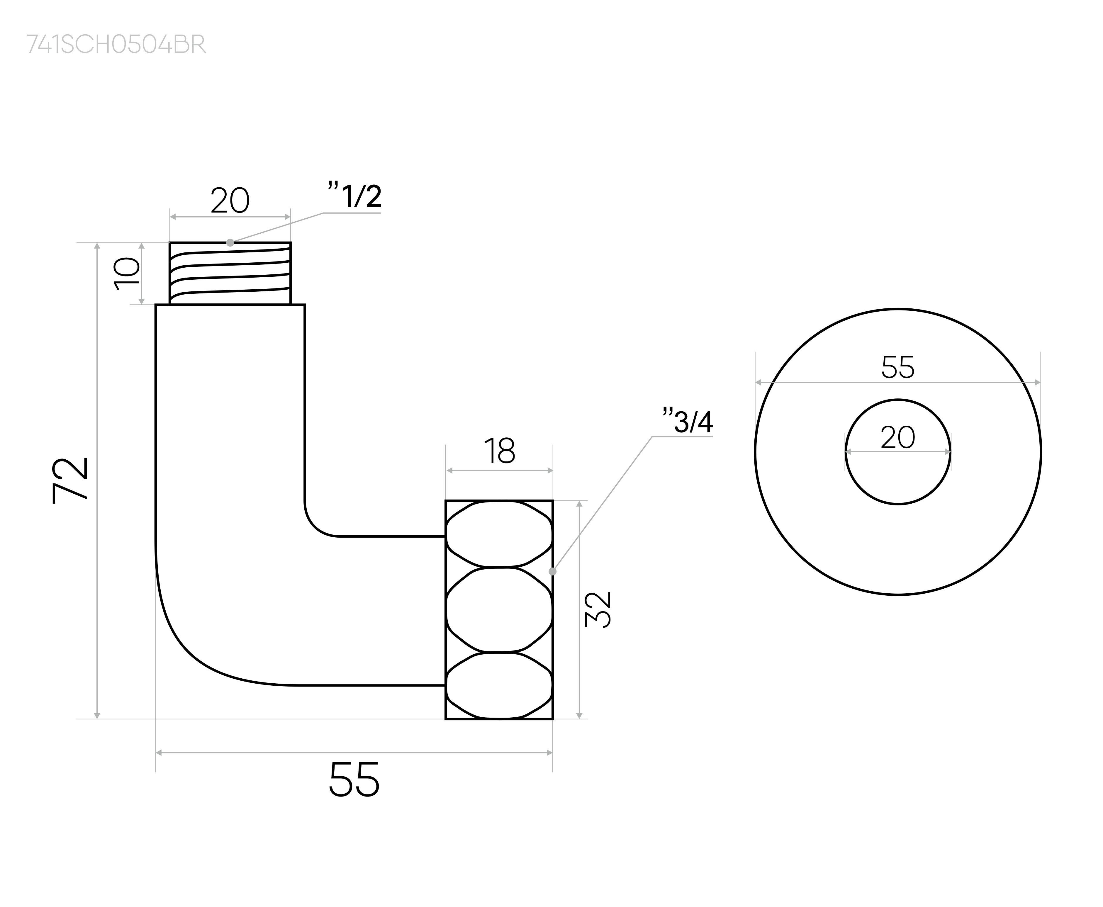 Соединение угловое гайка-штуцер, в сером цвете, диаметр подключения 3/4""х1/2"". В комплекте соединение угловое гайка-штуцер 2 шт, отражатель 2 шт.