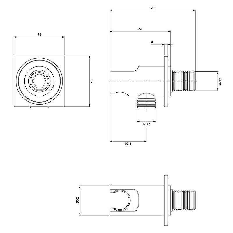 Соединение угловое Omnires с держателем ручного душа латунь (8873)