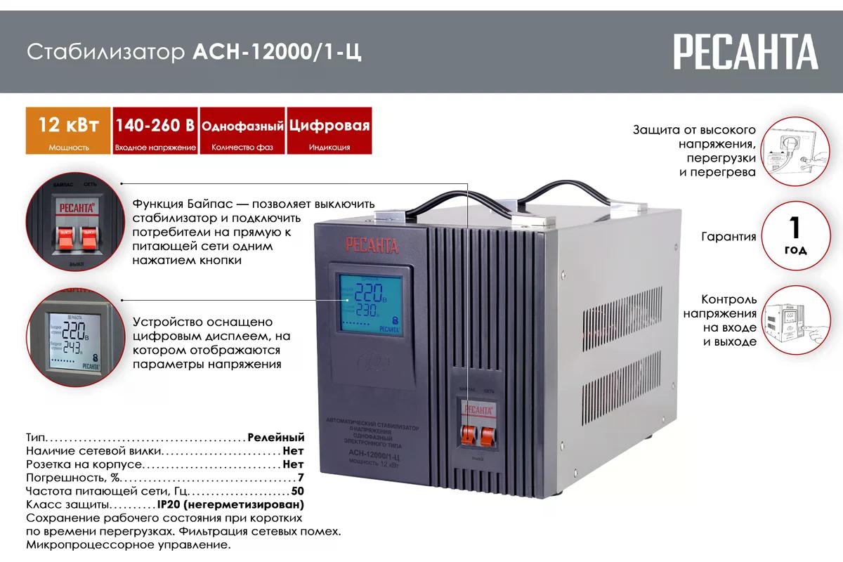 Стабилизатор напряжения Ресанта АСН-12000/1-Ц (63/6/10)