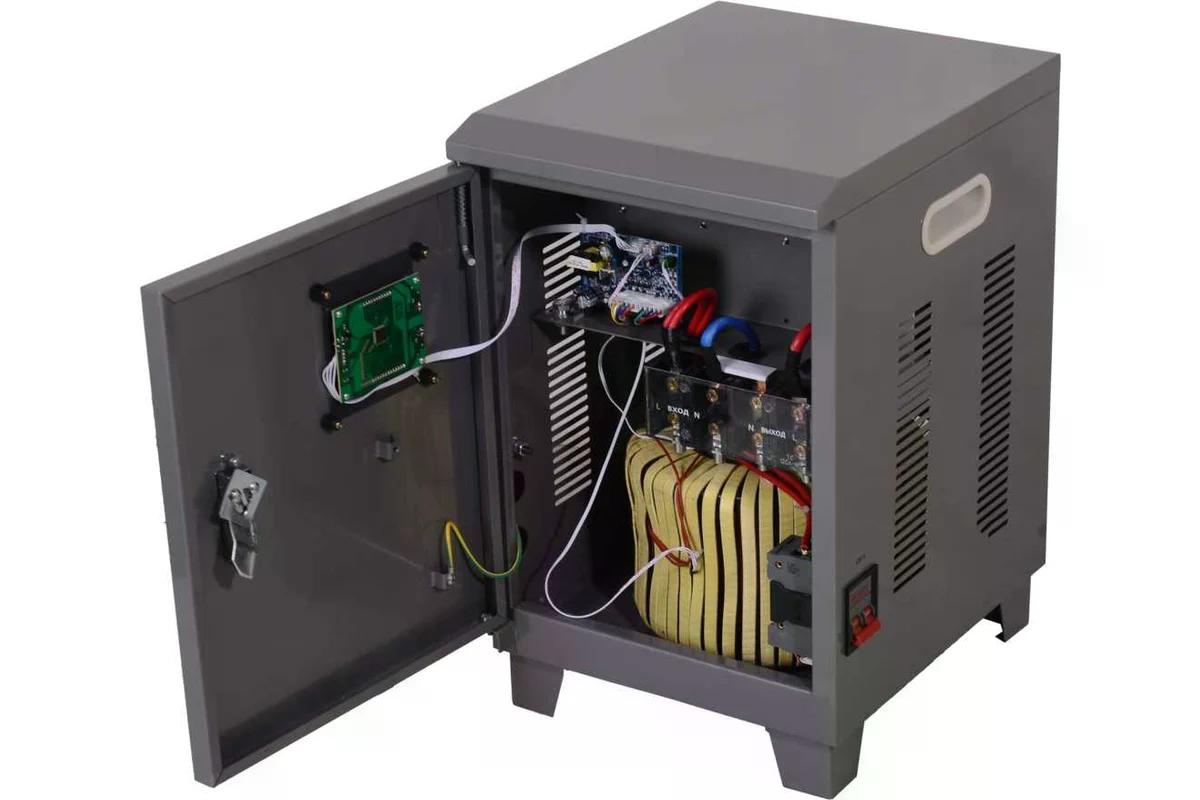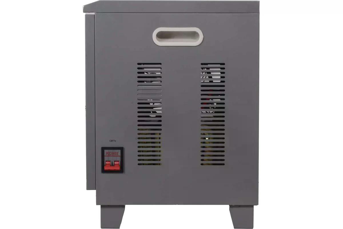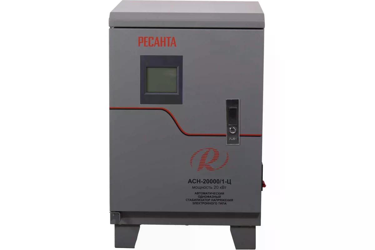 Стабилизатор напряжения Ресанта АСН 20000/1-Ц релейного типа рассчитан на обеспечение непрерывной работы приборов суммарной мощностью до 20 кВт. Рабочее напряжение сети — 220В с возможностью регулировки с минимальной погрешностью в пределах ±8%.