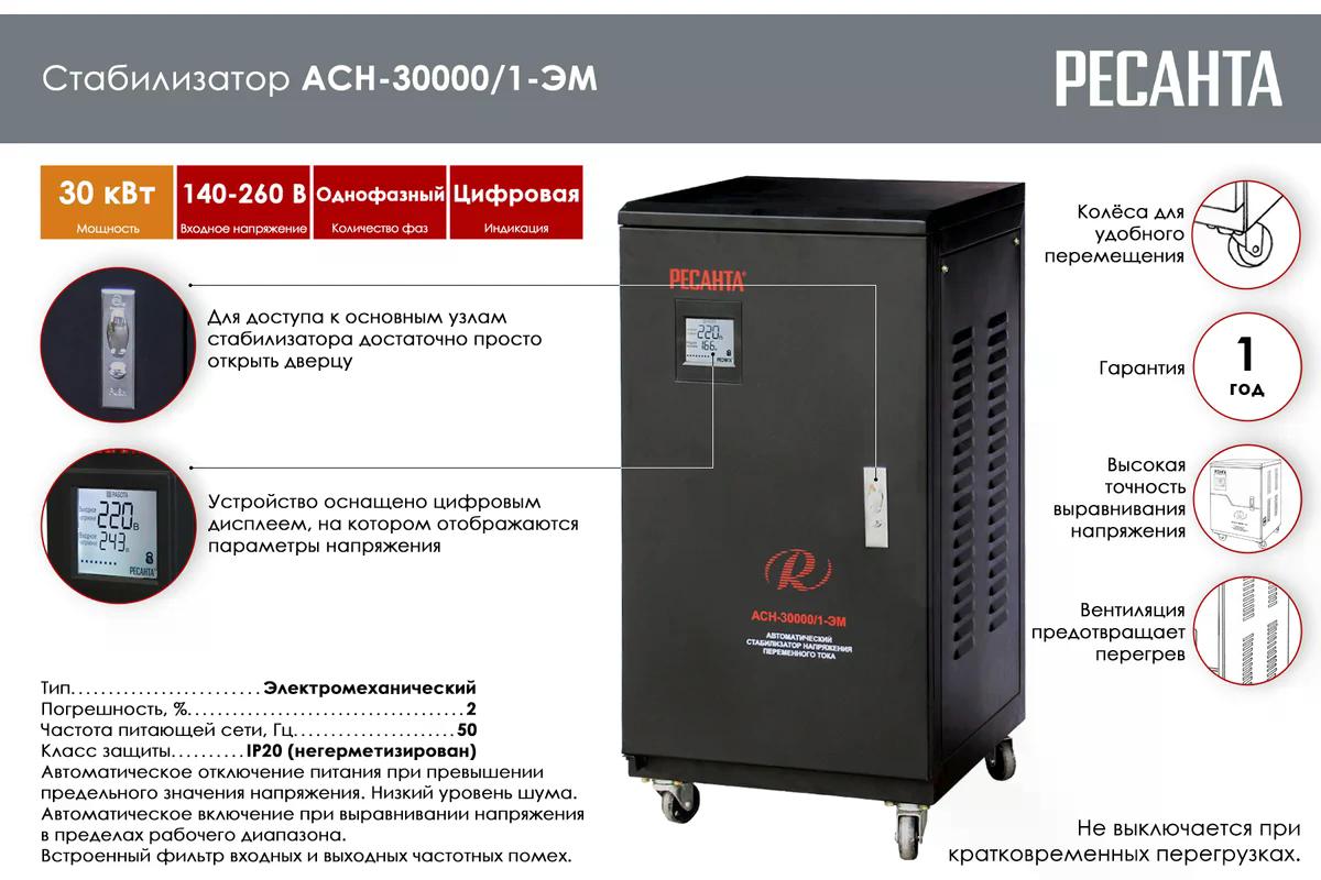Стабилизатор напряжения Ресанта АСН-30000/1-ЭМ (63/3/3)