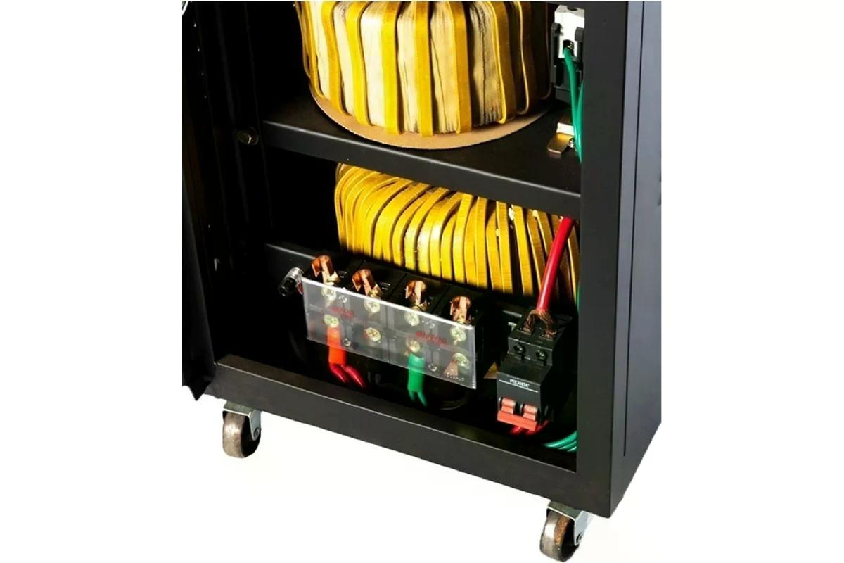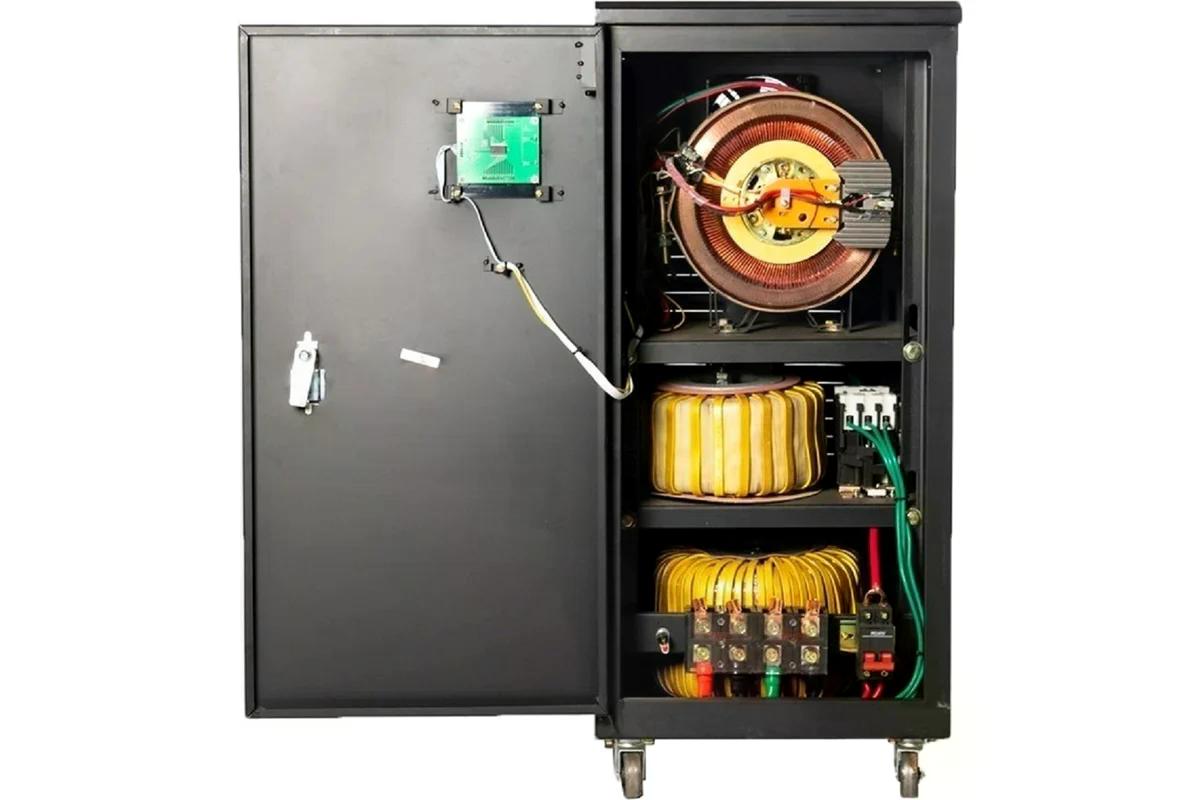 Прибор имеет прочный корпус с классом защиты IP20 и удобное напольное размещение с транспортировочными колесами для легкой установки. Стабилизатор Ресанта АСН-30000/1-ЭМ идеально подходит для обеспечения стабильным питанием как офисных центров, так и небольших производственных помещений.